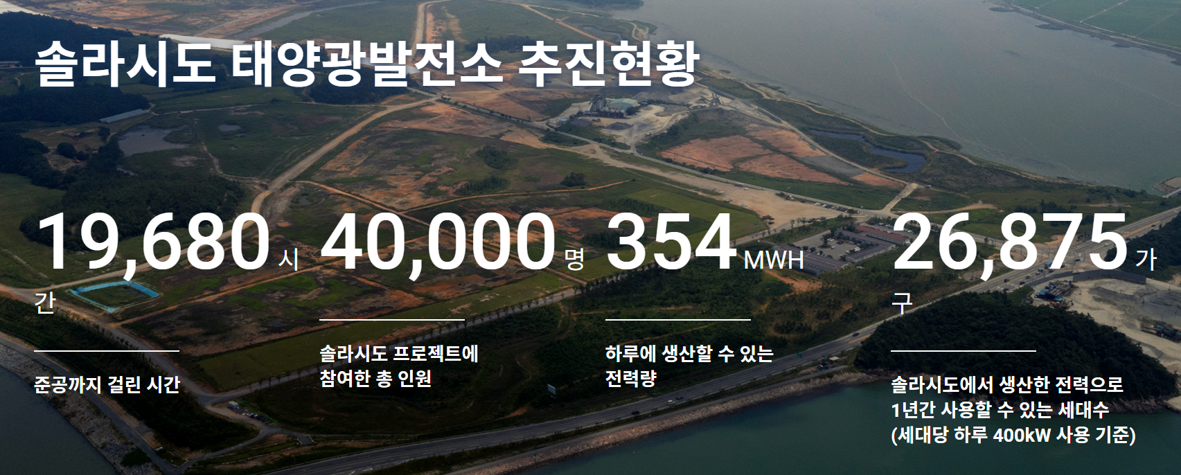 솔라시도 : 4.2kWh/m²/Day * (295,493.2m² + 200,621m² + 279,675m² + 284,101.8m²) * 23% = 4,451,565.2kW (4.45GW)