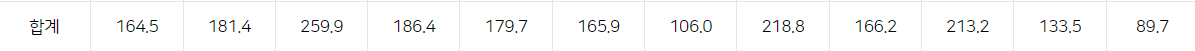표에서, 각 월의 일조 시간을 모두 더해서 365로 나누면 일일 일조시간을 알 수 있다.