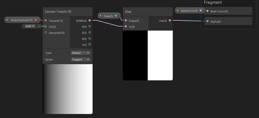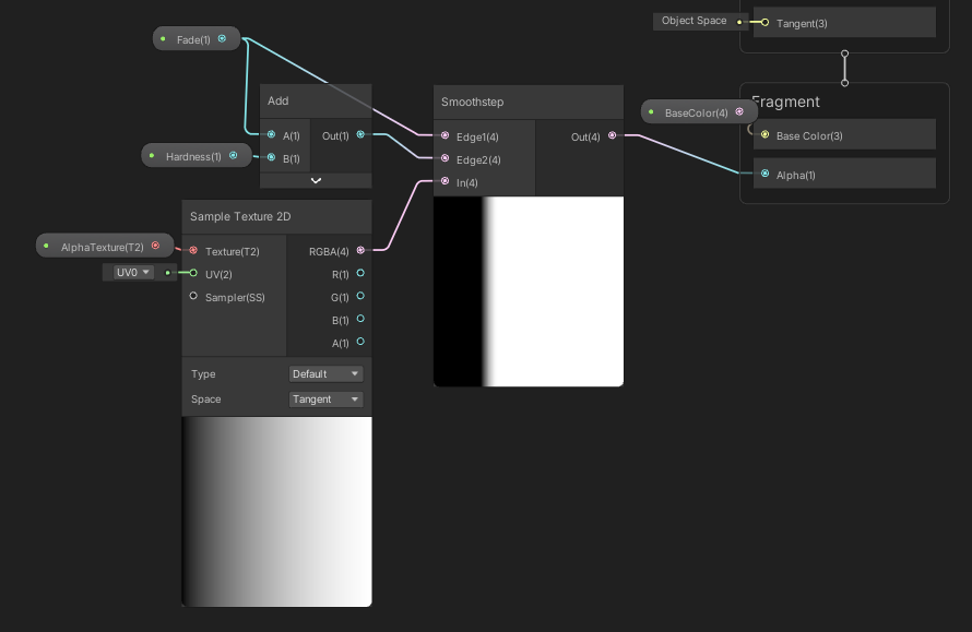 Fade 값은 Edge1과 연결되어 있으므로 시작점을 의미하고, Hardness값은 Fade 값과 더해져서 Edge2의 끝점이기 때문에 얼마나 날카로울지를 정해주는 변수이다.
