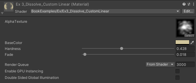 바로 전 Dissolve에서 Hardness를 조절할 수 있게 수정된 셰이더이다.