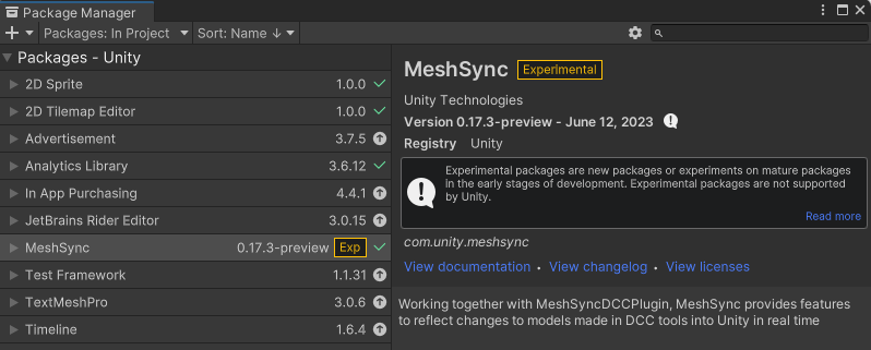 직접 meshsync.dcc-plugins를 패키지 매니저로 설치하는 방법