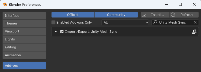*Blender 버전 4.0.2, Unity 버전 2021.3.12f1 기준 -> Addon이 Blender 3.4까지 지원으로 실패