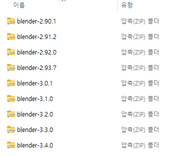 Blender에서 따로 위치 시켜놓았던 blender-3.4.0.zip 파일을 연다.