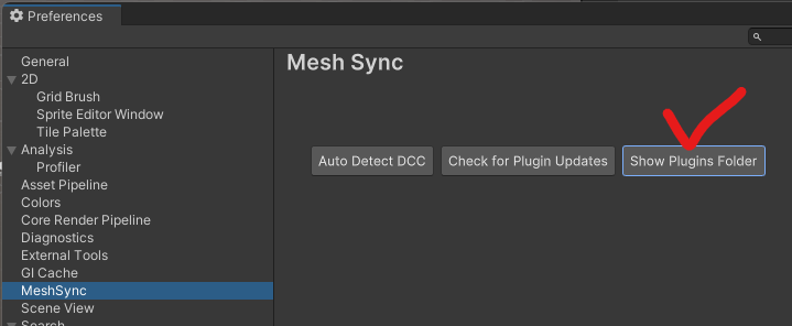 [Preferences] - [Mesh Sync]에서 DCC 툴을 찾아서 연결할 수 있는데 혹시 뜨지 않는다면 아래의 방법을 사용한다.