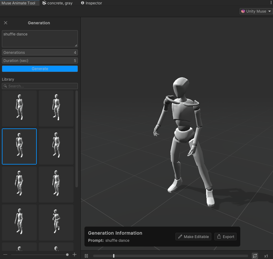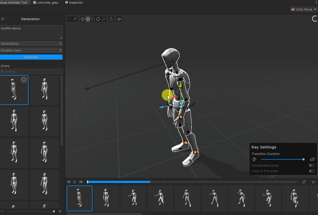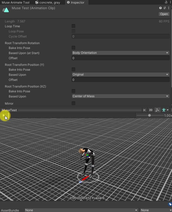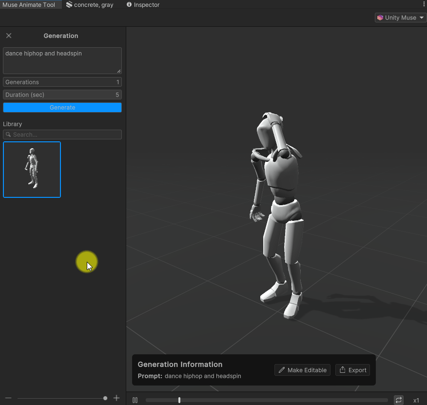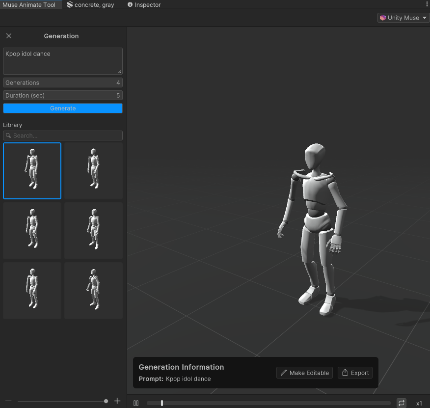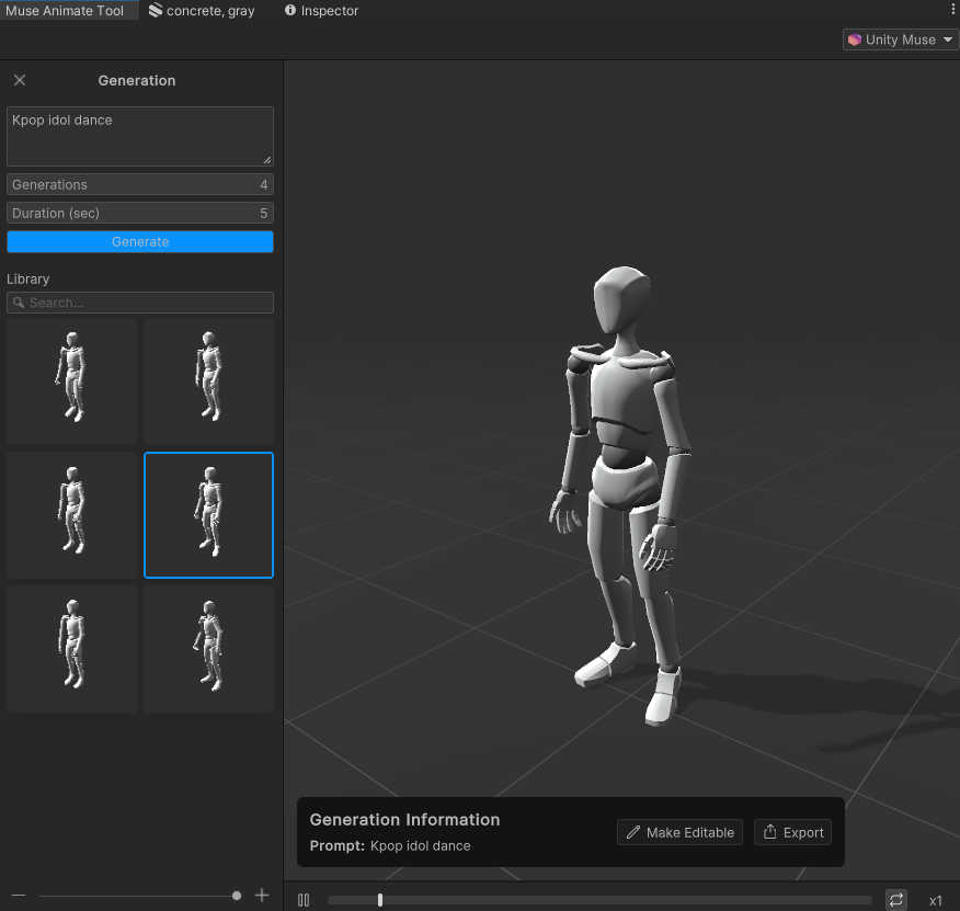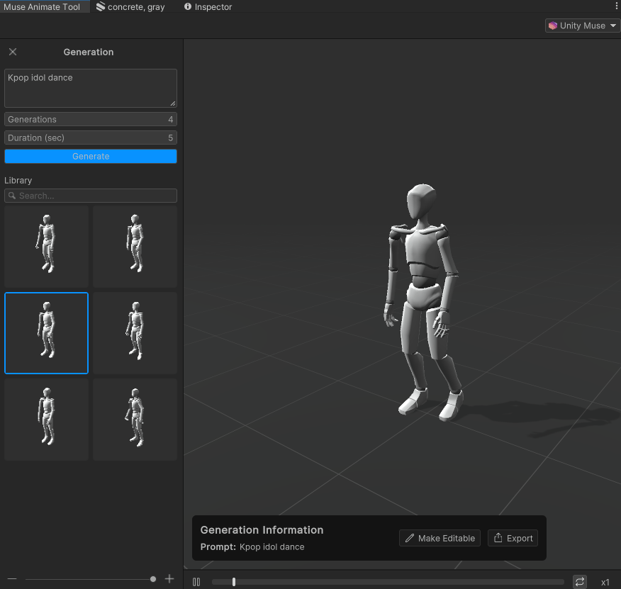 *참고로 Muse로 생성된 애니메이션은 아직 Humanoid 형태만 가능하다.