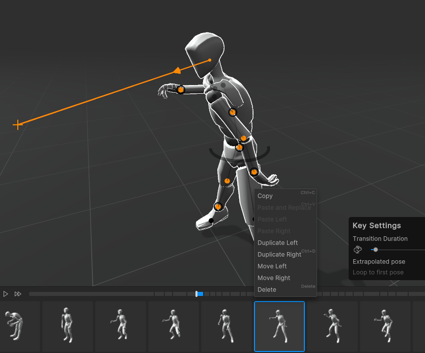 Loop to first pose를 선택하면 처음 포즈로 되돌아간다.