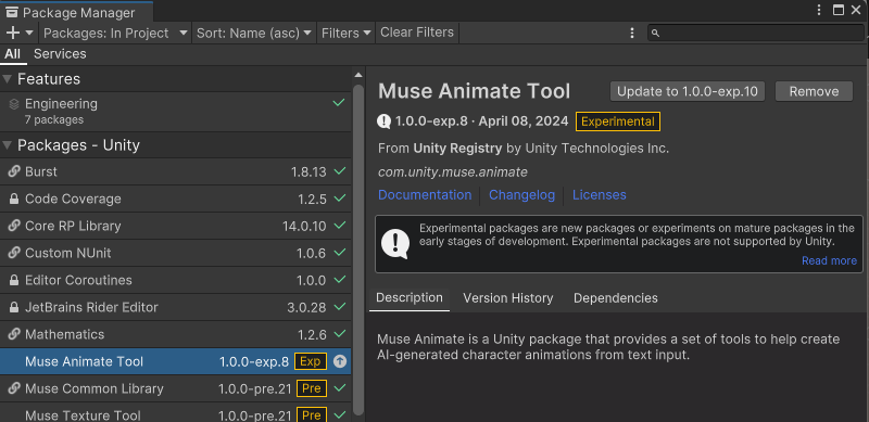 *Muse Animate Tool의 최신 버전은 1.0.0-exp.10이다.