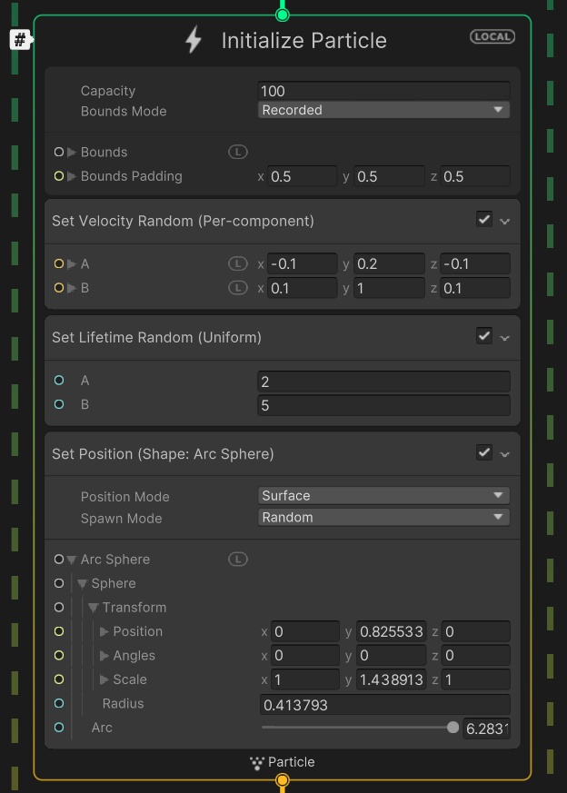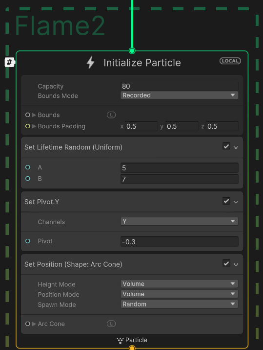 [Set Pivot.Y]는 파티클이 생성될 Y축 기준 피봇을 변경하는 노드이다.