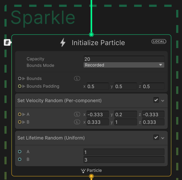 Update Particle 부분은 C# 스크립트의 void Update 처럼 파티클에게 계속해서 효과를 적용시키는 부분이다.