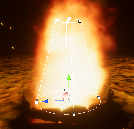 장작으로 사용될 나뭇가지 몇 개를 같이 올려서 Play를 한 모습이다. 다른 사람들이 만든 더 좋은 불도 많지만 나름 VFX와 HDRP를 이용한 불로는 쓸만하지 않나 생각한다.