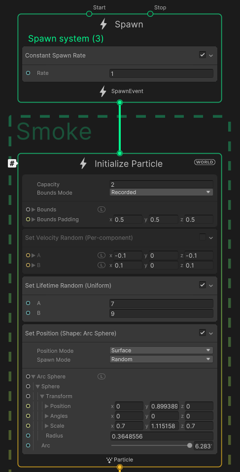 [Set Position Arc Sphere]도 최대한 구의 크기를 줄여서 너무 연기가 퍼지지 않게 했다.