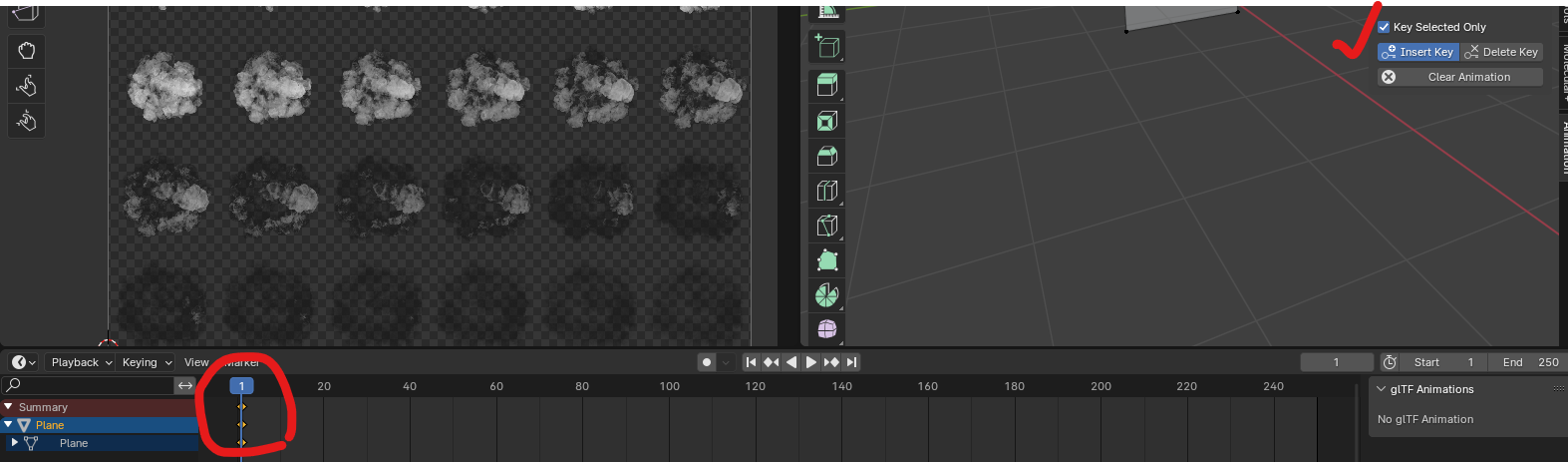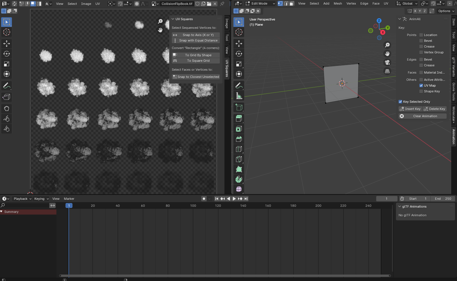 전체적으로 보면 [Edit Mode] 창에서 'N 단축키' 메뉴에 [Animation]이 새로 생긴 것을 볼 수 있고 [UV Map]과 [Key Selected Only]를 체크한다.
