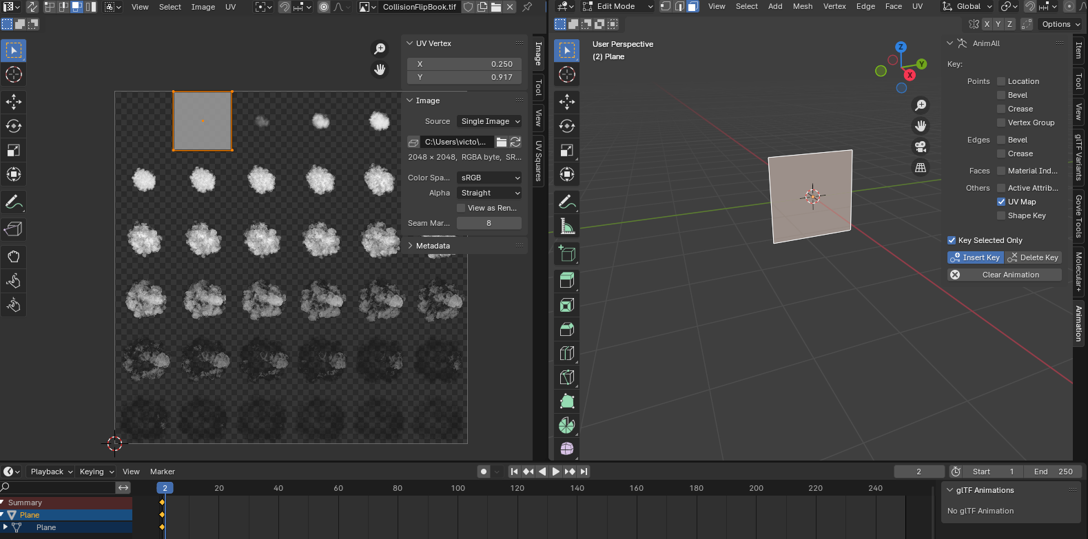 하지만 UV Vertex 값에는 마우스 오른쪽 클릭을 해도 Keyframe 추가 메뉴가 나오지 않는다. Addon 설치로 해결할 수 있다.