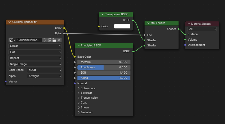 알파 값을 가진 텍스쳐이기 때문에 셰이더 노드를 아래와 같이 작성해야 한다.