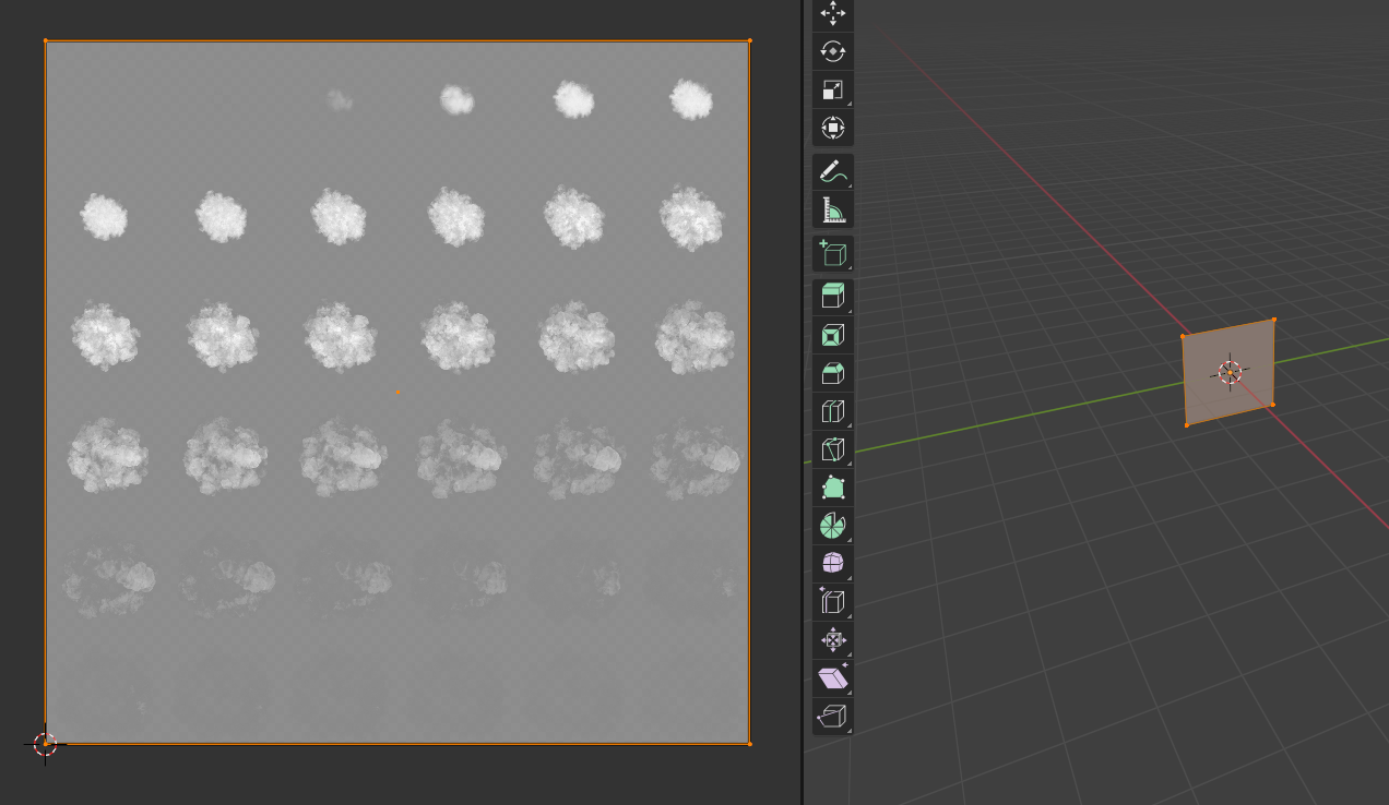 텍스쳐를 이것 저것 사용하고 찾다보면 가끔 한 장의 텍스쳐에 바둑판 형식으로 여러 개의 그림이 그려져 있는 것을 볼 수 있다. 주로 불이나 연기 표현에서 사용한 경험이 있다.
