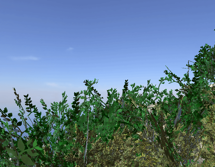 - 모델링에 Vertex Color 값이 있다면 줄기의 파란색을 제외한 잎에만 셰이더를 줄 수 있다.