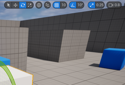 이동/회전/스케일 단축키 : 유니티와 동일하게 QWER. 기본적으로 Increment 설정이 되어있어서 계단식으로 수정된다. 해당 그리드 모양을 끄면 snap을 끌 수 있다.
