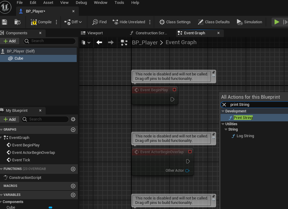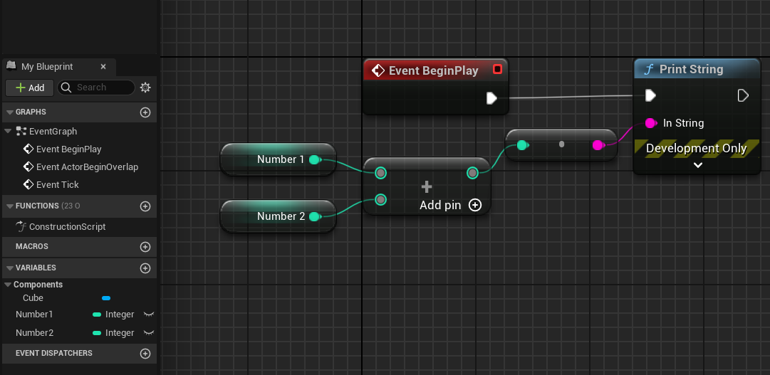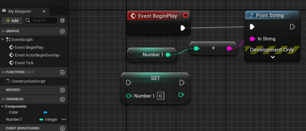 Int를 String으로 출력하려니 중간에 컨버트 노드가 자동으로 생성된다.