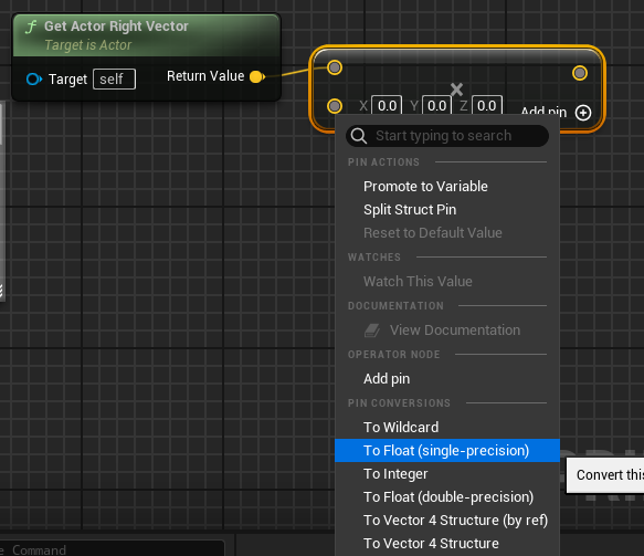 [Get Actor Right Vector] 노드 추가, Muliply 노드 연결