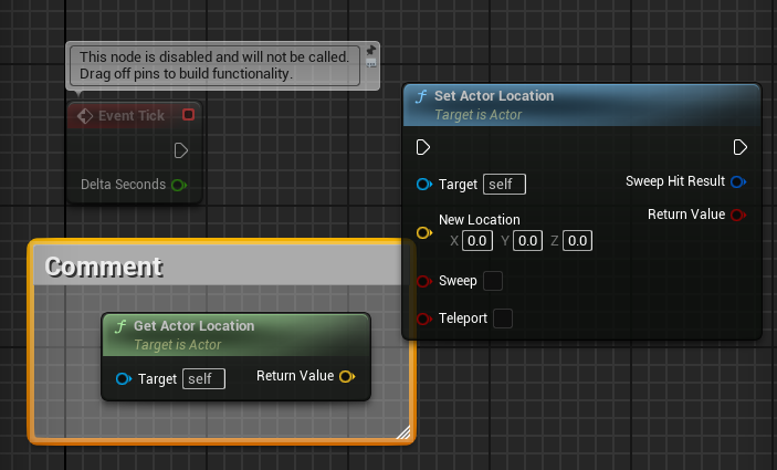 [Set Actor Location] 노드 추가, C키 눌러서 Comment 추가