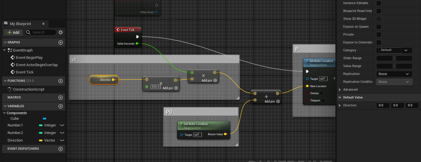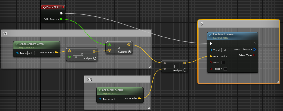 최종적으로 완성된 블루프린트. (P = P0 + vt)