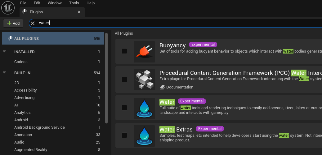 [Edit] - [Plugins]에서 플러그인을 살펴볼 수 있다.