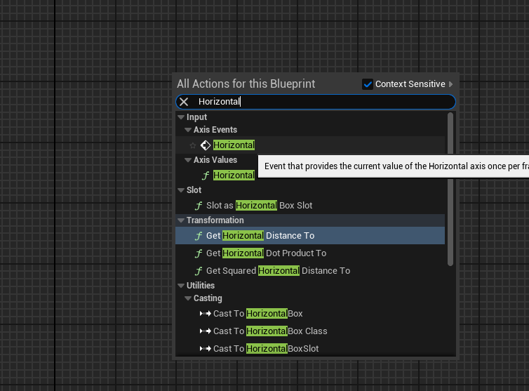 이제 블루프린트에 입력 이름을 검색하면 가져와서 사용할 수 있다.