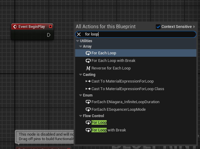 "for loop" 검색해서 [For Loop] 노드 생성