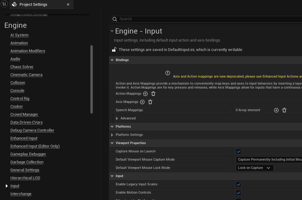 [Project Settings] - [Engine] - [Input] 메뉴를 보면,