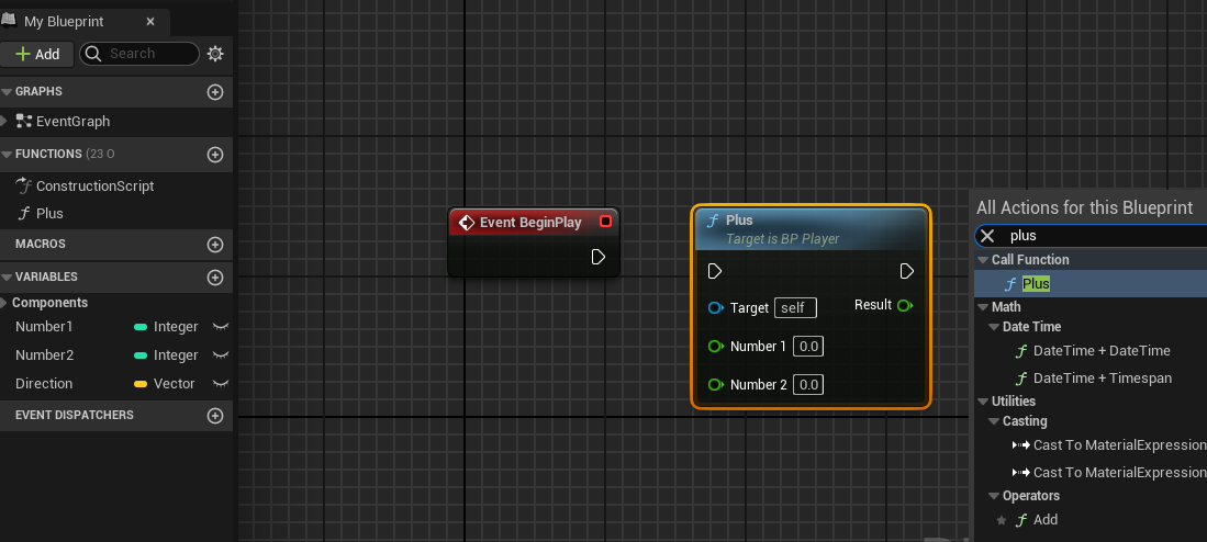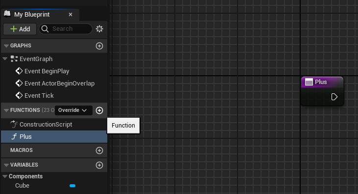우측 [Functions]에서 "Plus"라는 새 함수를 생성했다.