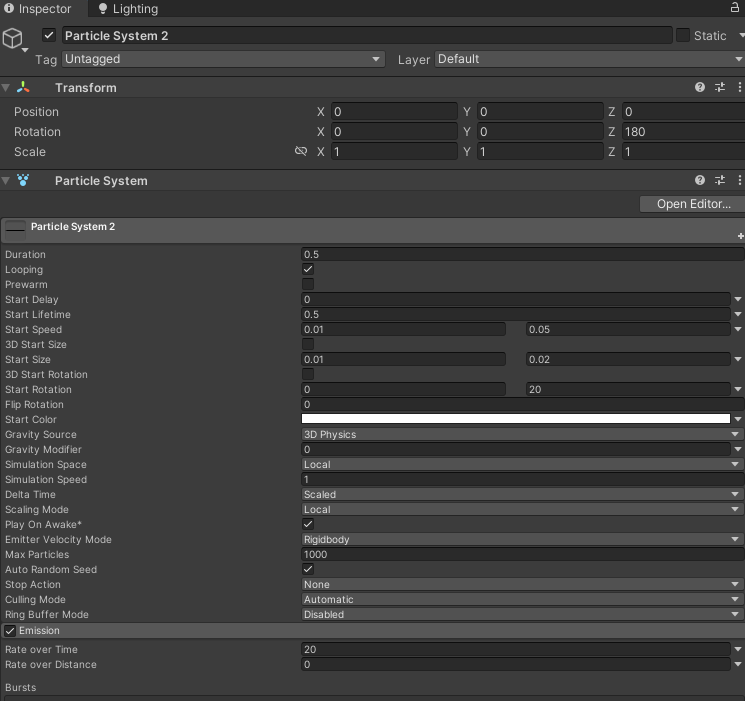 텍스쳐 특성상 같은 텍스쳐가 계속 나오면 복사한 티가 나고 이상할 수 있기 때문에 하나를 Mirror 하여 두 파티클 시스템을 사용할 예정이다.