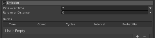 [Rate over Time] : 5 설정으로 생성되는 텍스쳐 수를 조절한다.