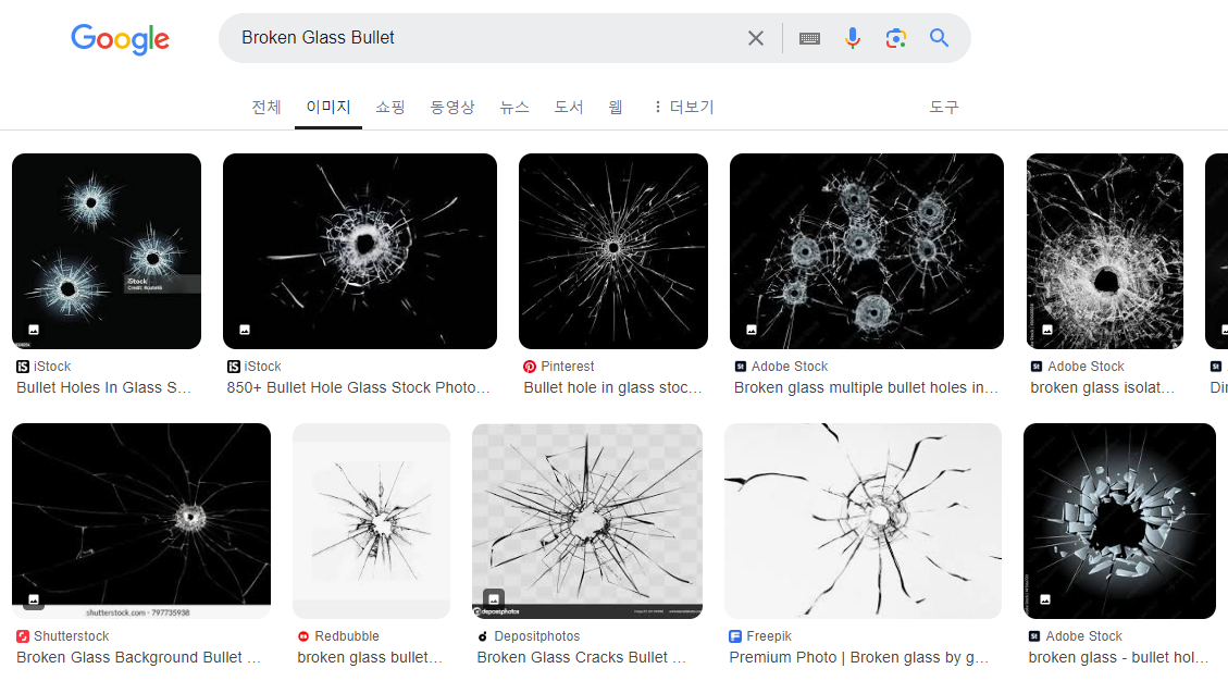 영상에서도 나왔듯이 "BrokenGlassBullet"를 구글 검색 후 적당한 원형 이미지를 받는다. (저작권에 주의)