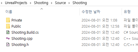헤더 파일은 Public에, .cpp 파일은 Private 폴더로 옮긴다.