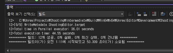 오른쪽 솔루션 탐색기에서, Shooting에 우클릭하고 빌드를 누른다.