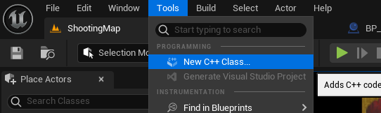 [Tools] - [New C++ Class...] 선택