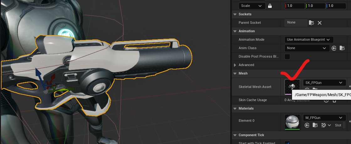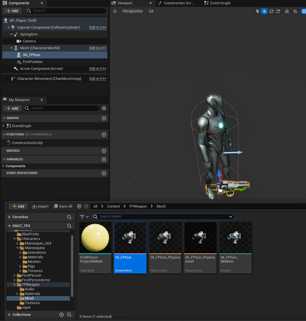 SK_FPGun을 끌어다가 Mesh의 하위에 배치한다.