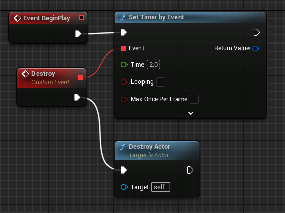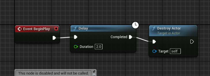 다른 방법으로는, Delay와 Destroy 노드를 통해서 2초 후에 사라지게 할 수도 있다.