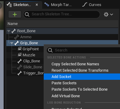 Grip_Bone에 우클릭해서 [Add Socket]하고, 이름을 "FirePosition"으로 바꾸었다.