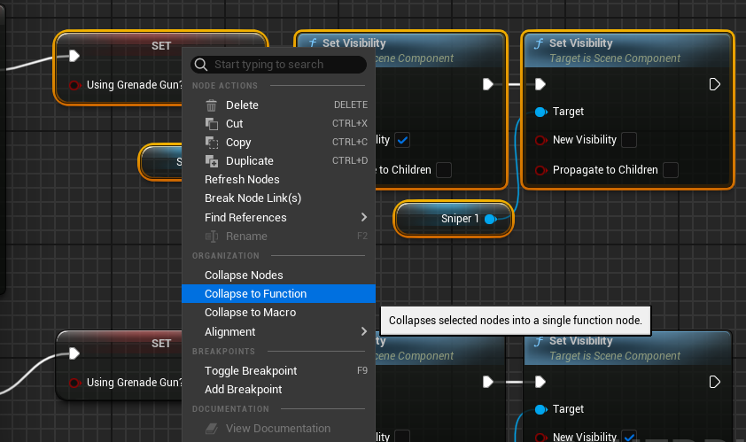 총 바꾸는 노드들을 모두 잡아서 우클릭, [Collapse to Function]으로 하나의 함수로 만들었다.