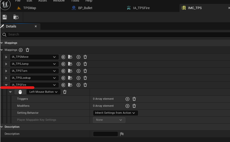 IMC_TPS에 IA_TPSFire를 등록하고 좌클릭을 Mapping 했다.