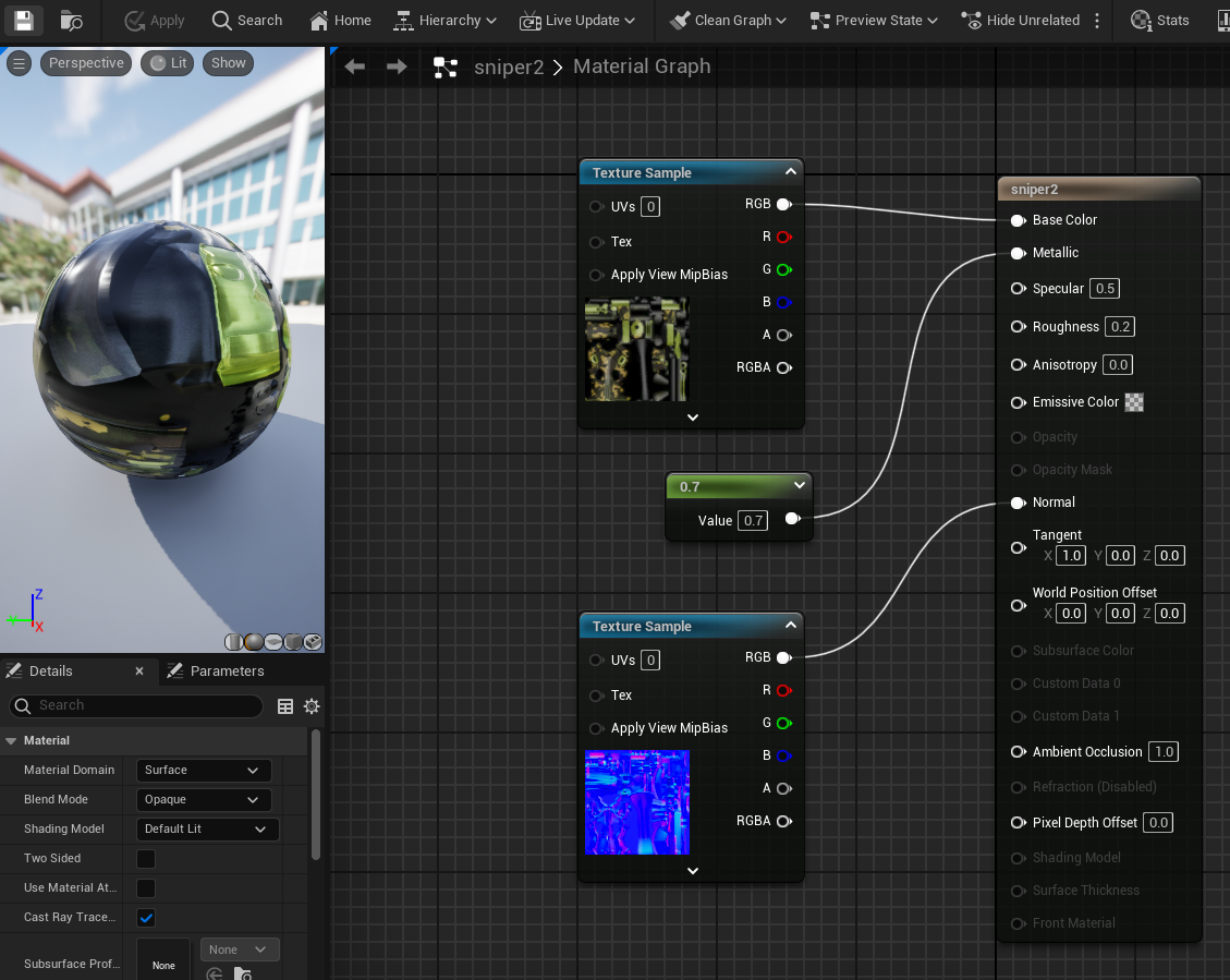 sniper2 메테리얼에 텍스쳐를 적용한다.