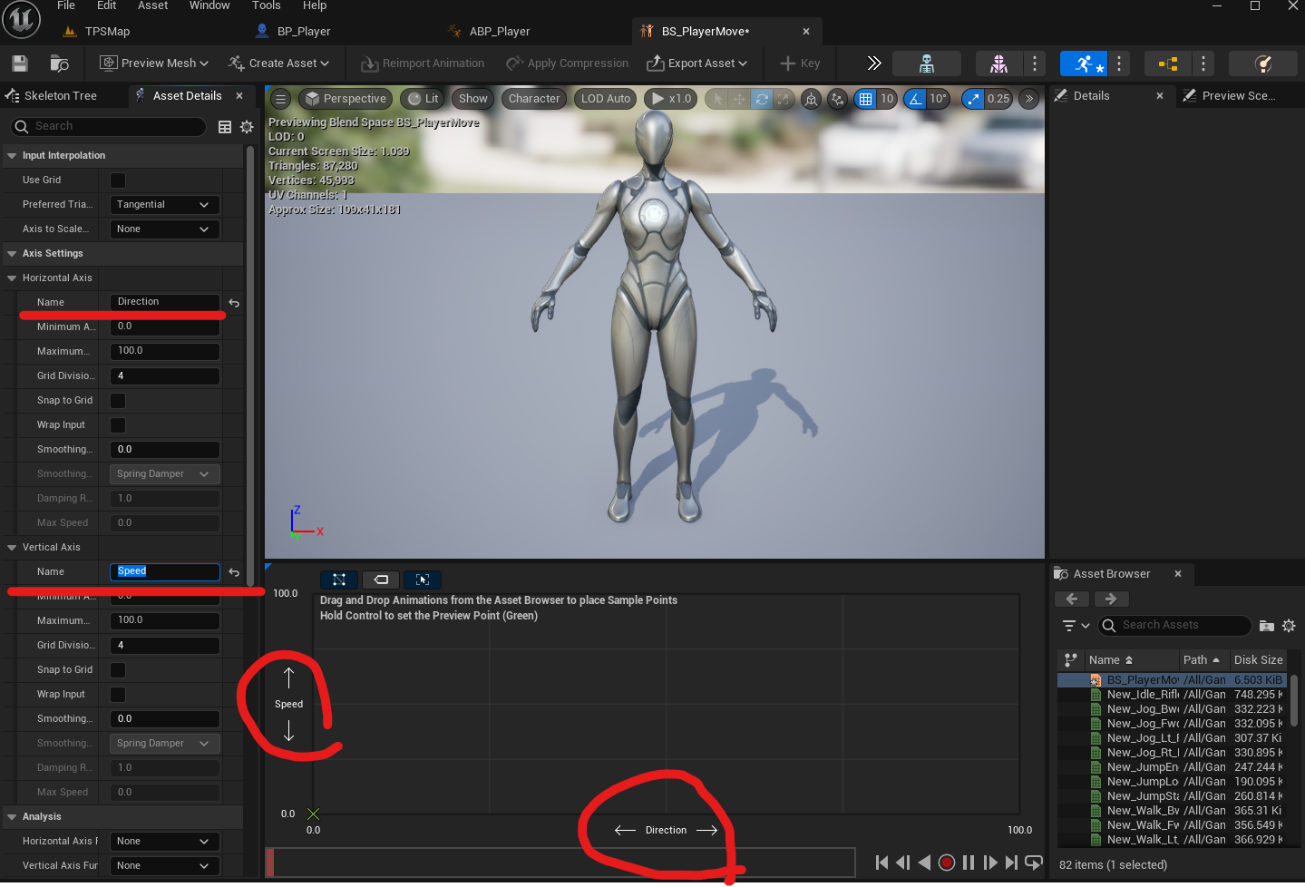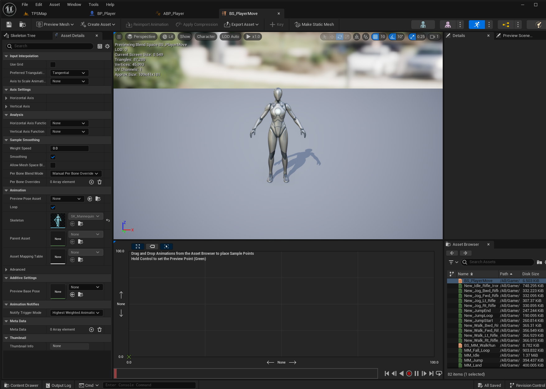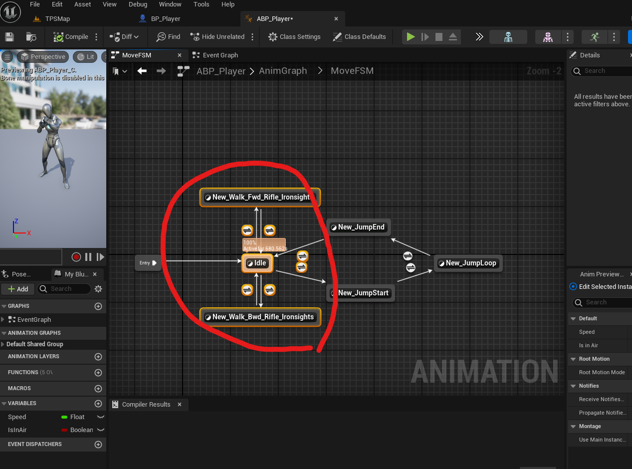 Blend Space를 저장하고, ABP_Player로 돌아간다. 해당 부분을 Blend Space로 교체하기 위해서 삭제.