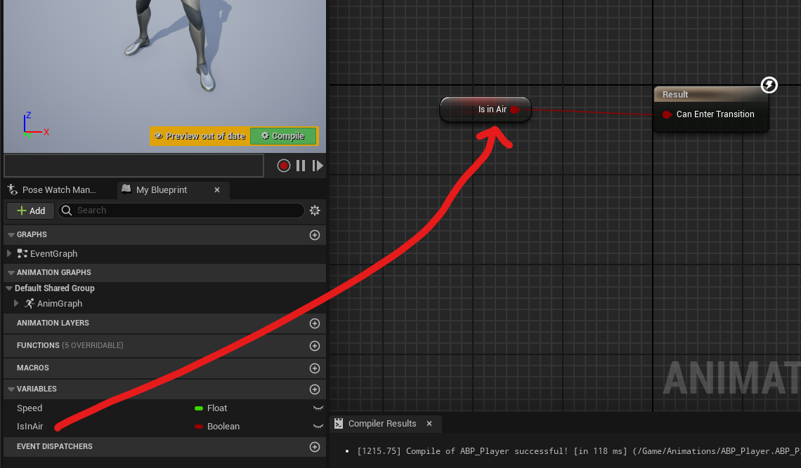 IsInAir bool Variable 추가, True일 때 New_JumpStart 애니메이션 추가