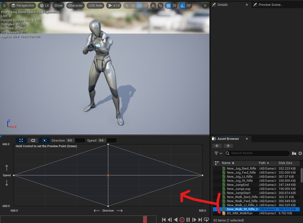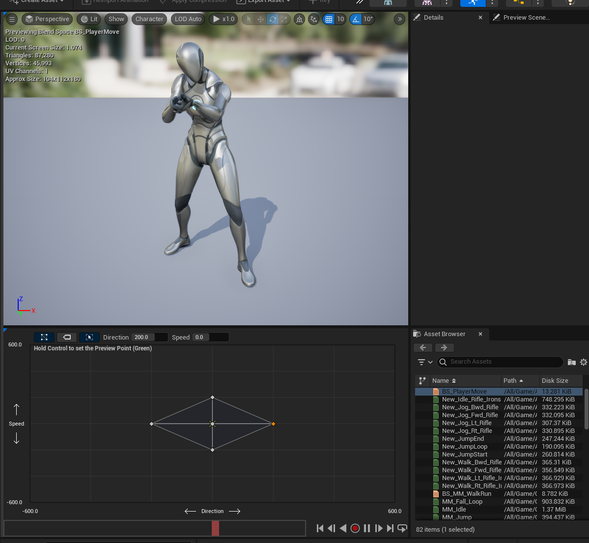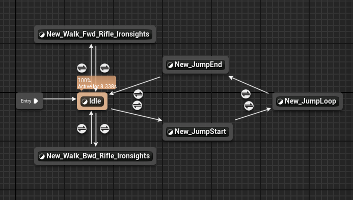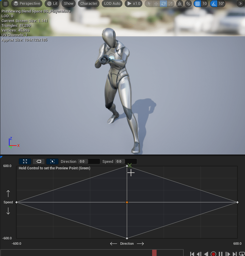Blend 되어 서서히 빨라지는 애니메이션을 볼 수 있다. 하지만 막상 실행해서 보면 게임 내에서는 무조건 뛰기만 한다.