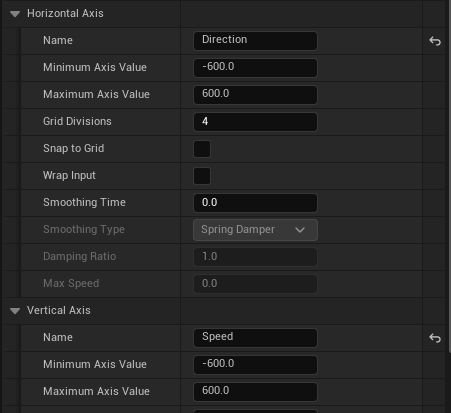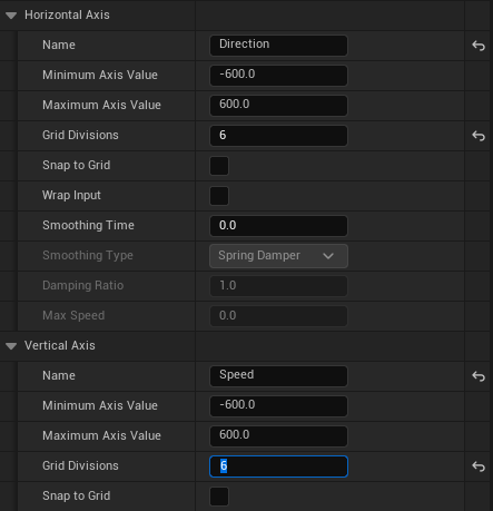 Character Movement의 Max Walk Speed가 600cm/s이기 때문에 BS_PlayerMove의 Axis Value 값도 -600~600으로 설정