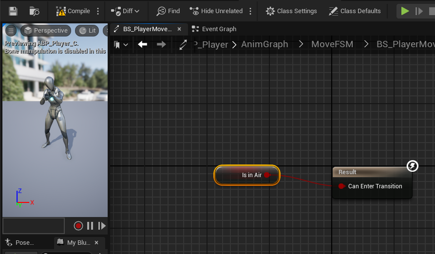 BS_PlayerMove에서 New_JumpStart 가는 트랜지션은 공중일 때 참 값을 가져오므로 아래와 같이 설정.