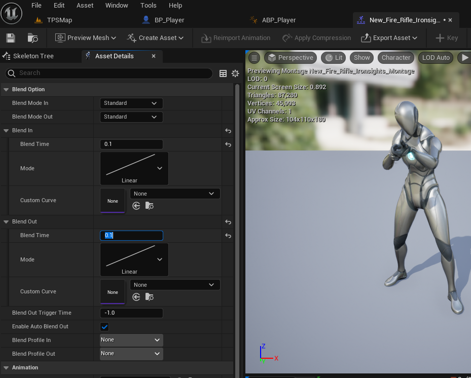 몽타주의 Blend In/Out은 0.25에서 0.1로 수정한다. 제대로 애니메이션이 나오기도 전에 Blend 되어서 안보이기 때문.
