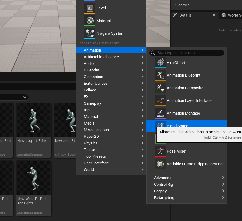 Animations 폴데에서 [Animation] - [Blend Space] 추가