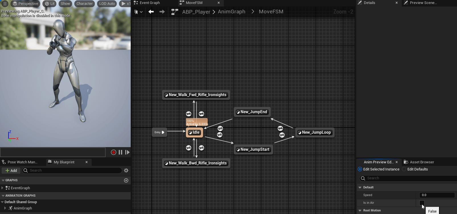 ABP_Player 애니메이션 블루프린트를 더블클릭하여 연다.